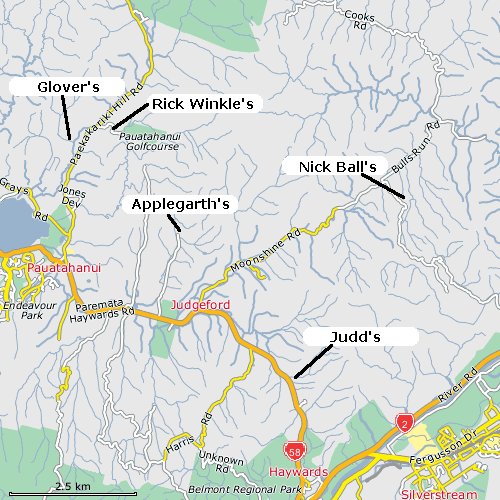 Turn off SH58 on the West side of Judgeford Golf Course into Mulhern Rd.