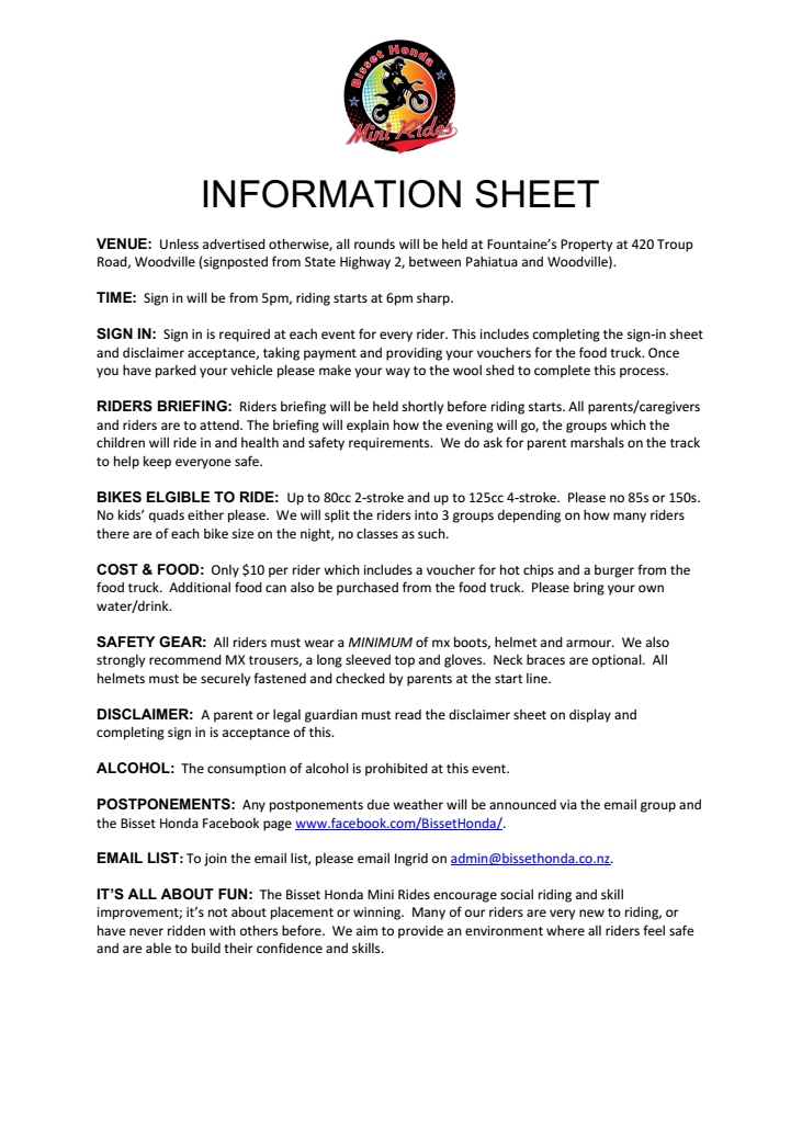 To keep up to date on all Mini Rides info, join our email