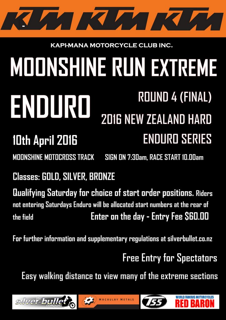 The Kapi-Mana Motorcycle Club presents the SECOND running of the Moonshine Run Hard Enduro.