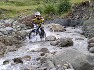 Paul riding a borrowed Gas Gas 250 trials bike made great progress through the day as we tackled a variety of obstacles. He quickly mastered the vertical banks, then slippery logs before getting into some fast flowing river riding with loose boulders.