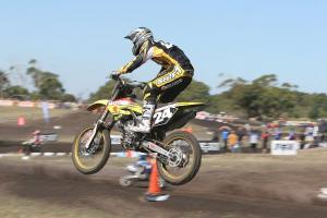 In a day where all the leading teams were to the fore, defending champion Darryll King (CDR Nokia Yamaha YZ450F) – still riding with an injured foot - made it three manufacturers on the podium with a pair of third places, while his brother, Shayne (TeamMoto Honda CRF450R), was fourth in both races. Earlier, Shayne, the 1996 world 500cc motocross champion, qualified fastest from Anderson, Hurley, Darryll and Lee Ellis (Motorex KTM 450SXF) in the 40-rider field.