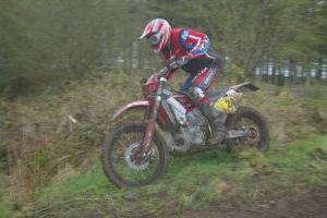 The first test on day 1 was the extreme test, and one of the rocks got me. I hit the deck hard mid test, bending the bars. I had to ride the cross and enduro test with bent bars, which effected my times. We managed to straighten them at the next check, enough to be able to ride ok. As the day progressed I got used to the bars and my times improved. 13th for the day. On Sunday, overnight rain had made the trail slippery and one rocky hill climb was removed and we went up a road. The loop was probably about 40% road, not so exciting.