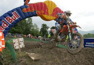 The first turn would no doubt be a lottery with Townley managing to stay out of trouble. The New Zealander emerged in fourth on the opening lap and quickly moved to third position behind KTM team-mate Steve Ramon and Stefan Everts. Townley was making good time on the two Belgians when he went down in the mud and was relegated to sixth. He regained his composure and once again charged through the pack only to go down for the second time. The resilient Kiwi was not counted out yet and put together a fast string of laps which would rocket the KTM 450 to third place with two laps to go. Townley was the only rider who dared to jump the spectacular triple jump and he went on to lap six seconds faster than leader Everts on the final lap and closed the gap immensely.