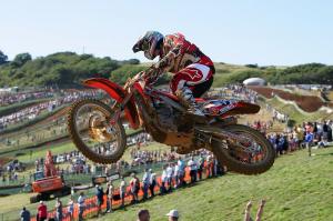 Close to thirty thousand enthusiastic English fans lined the boundary fences to see the gate drop for the first MX1 race. The CAS Honda star almost grabbed the hole-shot however, Belgian Steve Ramon, managed to take the advantage but overshot the next corner and pushed Coppins wide, losing the Kiwi precious time and positions. The worst was feared when Coppins signalled to the CAS Honda pits that something was not right with his machine in the opening laps of the race. He kept circulating at race pace but lost his third position to fellow Kiwi, Ben Townley. Everts was now behind Coppins and breathing down his neck. The New Zealander never once panicked and managed to find some extra seconds and succeeded in pulling away from his championship rival. He crossed the finish line in fourth but was not happy with the result due to a carburetion hitch.