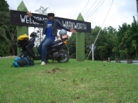 His most memorable stop-off so far was when he rode the Yamaha CV50 into Lord Of The Rings movie territory, near Matamata, and rode right up to the doorway of Bilbo Baggins' hillside home.