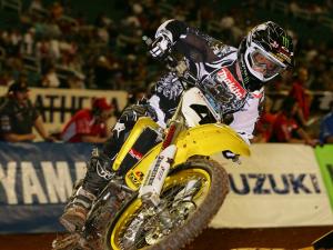 Team Makita Suzuki’s Ricky Carmichael raced to his fifth win of the season at Saturday night’s Indianapolis Supercross to close within one point of the Amp’d AMA Supercross series lead.