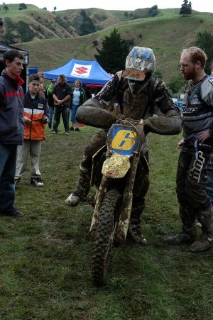 With special hand-guard mittens in place to keep his hands both warm and dry, the 29-year-old Rangitikei sheep farmer made it look as if he was on just another stock round-up, until his Suzuki team-mate, defending champion Brad Thomas, closed in during the final lap and threatened to snatch away the glory.