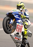 John Hopkins took the lead into turn one but Rossi passed him on the first lap to cross the line in front. Edwards however had already slipped down to sixth and was unable to make up anymore ground from then on. By lap three Rossi had dropped behind both Stoner and Marco Melandri but before long Rossi had despatched his fellow countryman and set off after Stoner, eliciting a thrilling game of cat-and-mouse which kept everyone on the edge of their seats. Rossi's M1 worked perfectly throughout and the Italian was never more than a few tenths down on Stoner, exploiting the agility and corner speed of his Yamaha in the earlier sections to close the gap and often pass Stoner, but relinquishing ground down the long back straight where the Ducati had the advantage.