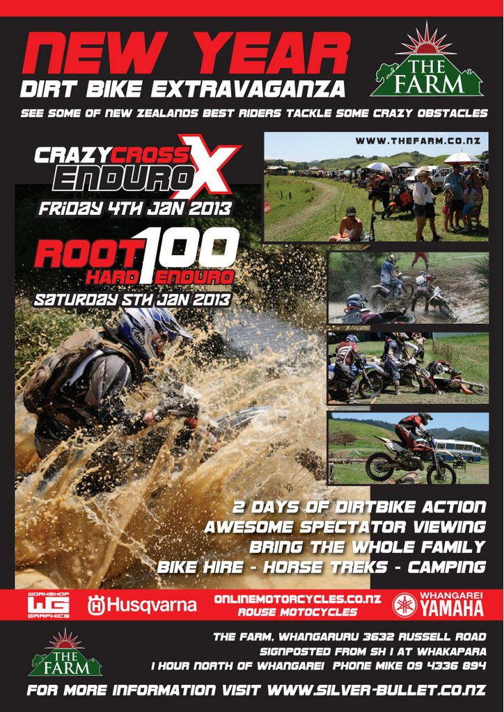 Feel like some extra practice before the final 2 rounds of the “KTM Extreme Enduro Series”, Come to sunny Northland in the new year for a holiday where Bike Park at The Farm is holding its annual new year’s motorcycle events. On Friday the 4th Jan is the Crazy Cross, a mix of Moto Cross, Enduro Cross and Cross country. This is a fun event designed to give riders a variety of different riding, and spectators some entertainment. (For more info click here)