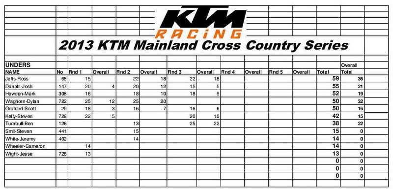 KTM Mainland XC Series, RESULTS