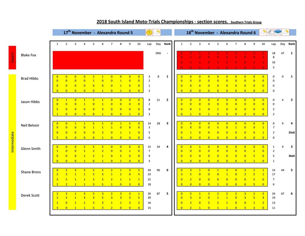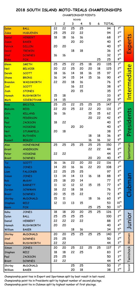 SI Moto Trials Champs, Rnd 5 & 6, RESULTS