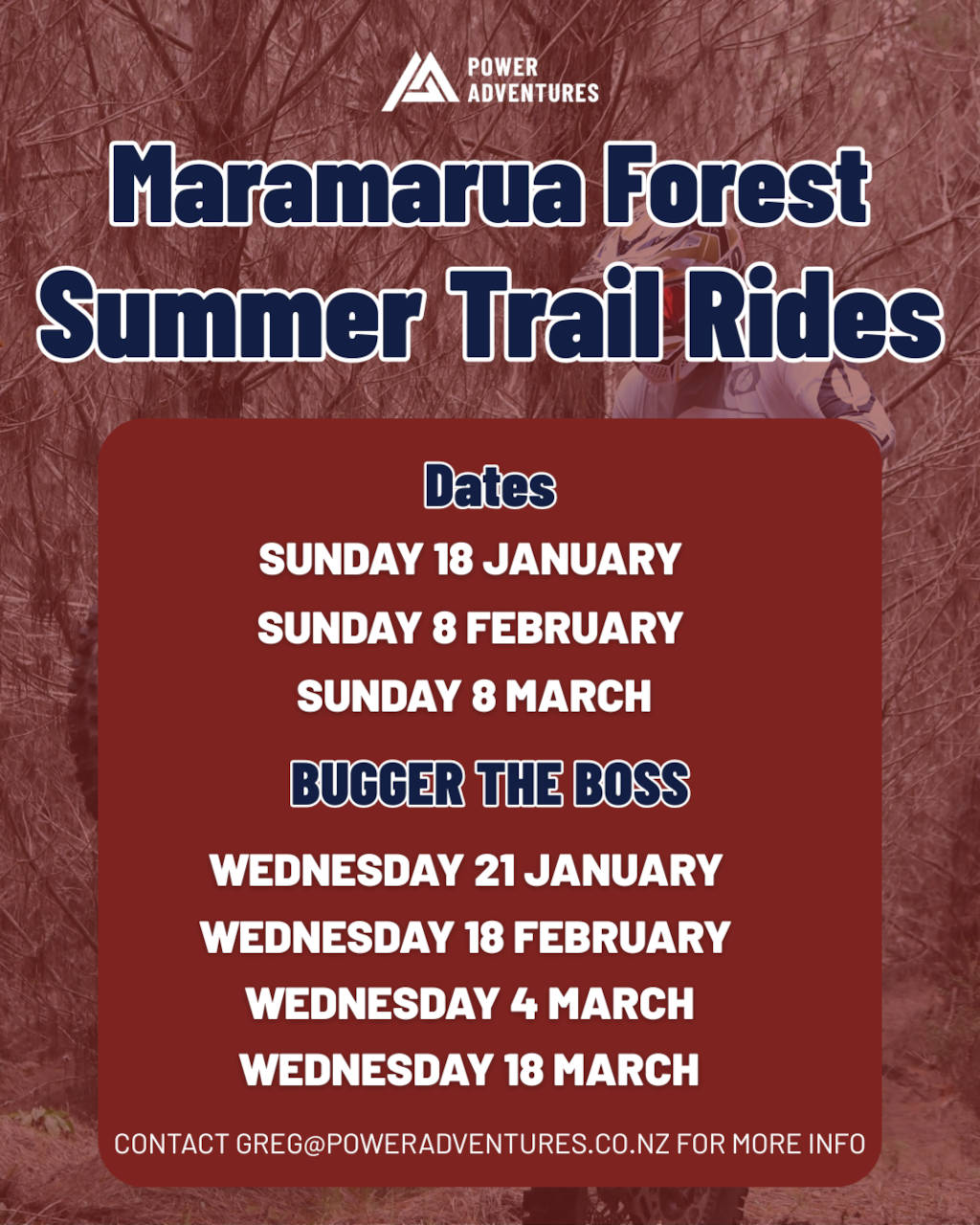 Where: Honda Motorcycle Park, Schumacker Road, Maramarua Forest