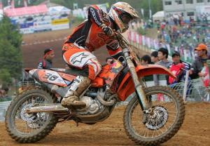 Determined not to let Everts and Pichon get the better of him in the second race, BT came charging through the pack after a first corner altercation. He experienced some resistance from veteran, Joel Smets, although the former Belgian world champ was riding on the limit and looked like he would bite the dust any second. Townley finally made his move and was on his way to catch Pichon and Everts. Roles had been reversed this time and with Pichon in second position, BT targeted the Frenchman first. After setting Pichon up, he executed a magnificent pass and was into second position and breathing down Everts’ neck. Over twenty thousand Japanese spectators were in awe of the young challenger who was now neck and neck with the eight times world champion. As Townley was set to make a move, his bike gave up all life and a devastated Townley was forced to the side of the track. All hopes of a GP victory in Japan were gone!