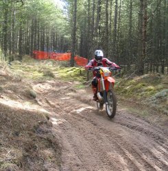 The terrain is sandy therefore the event is not likely to be cancelled due to the weather. One year at a Scottish Championship the sand was so dry the bikes were still immaculate at the finish. Another year there was a downpour for the week before and there was still no problem running the event. The trails are very similar to the Brecklands, Natterjack and the John Banks, close trees and sandy going. There is a short run along the edge of the beach in the dunes and the special test is a good 7 minutes long. John is planning to use Woodside motocross track and the adjacent sand quarry as the motocross test. Over the years this event has been run as a Scottish Championship event that everyone can finish and there is the same intention as a British round. There will be two road sections so all bikes will have to be road registered.